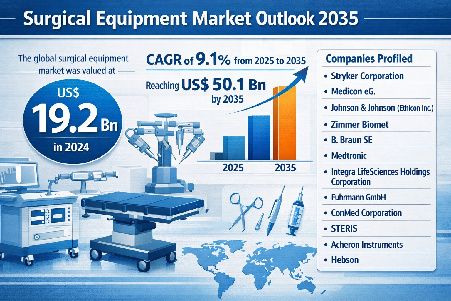 Global Surgical Equipment Market to Reach USD 50.1 Billion by 2035, Expanding at 9.1% CAGR Driven by Minimally Invasive Technologies and Rising Surgical Procedures
