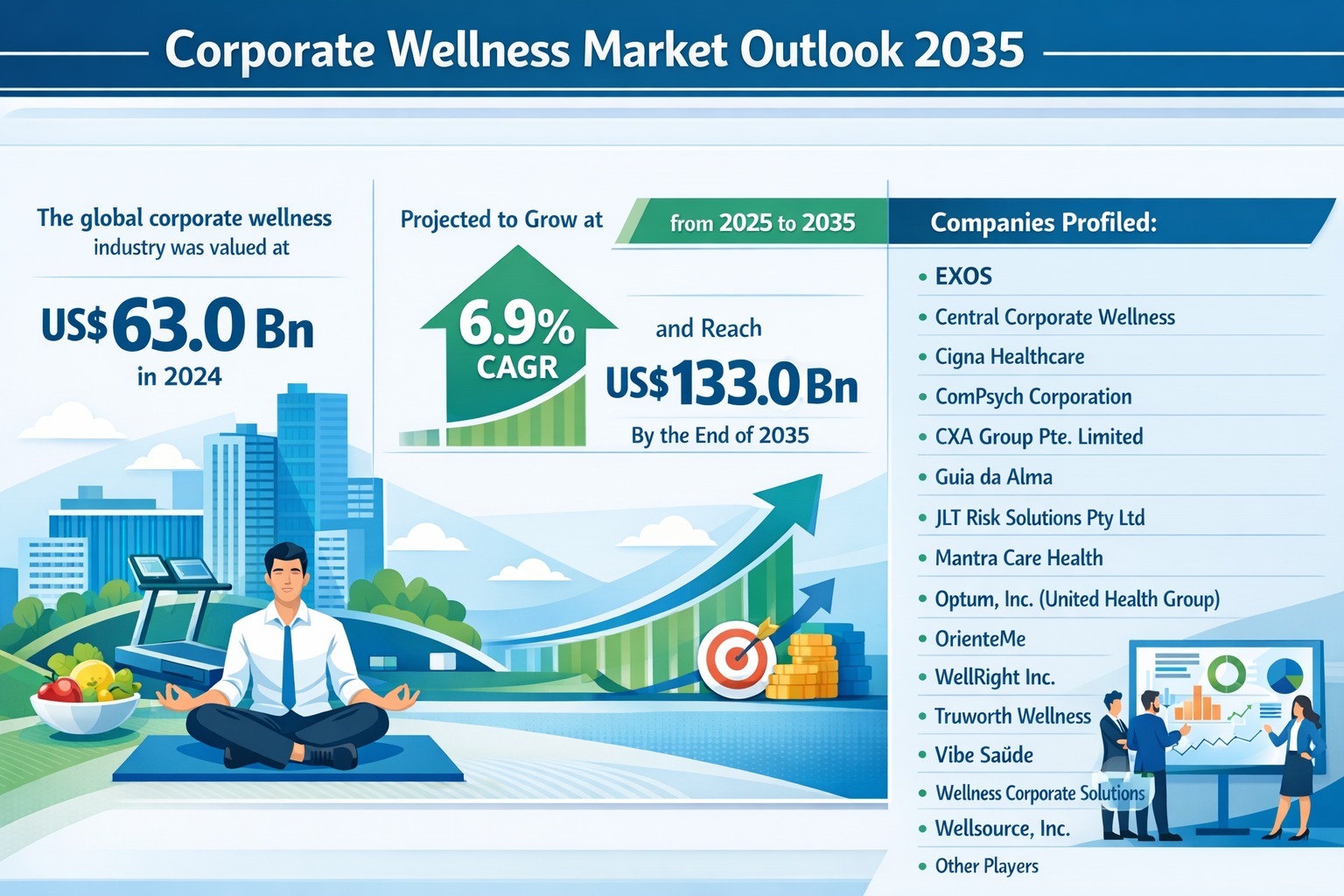 Corporate Wellness Market Outlook 2035: Industry to Reach US$ 133.0 Billion at 6.9% CAGR Driven by Digital Health, Preventive Care, and Employer ROI Focus