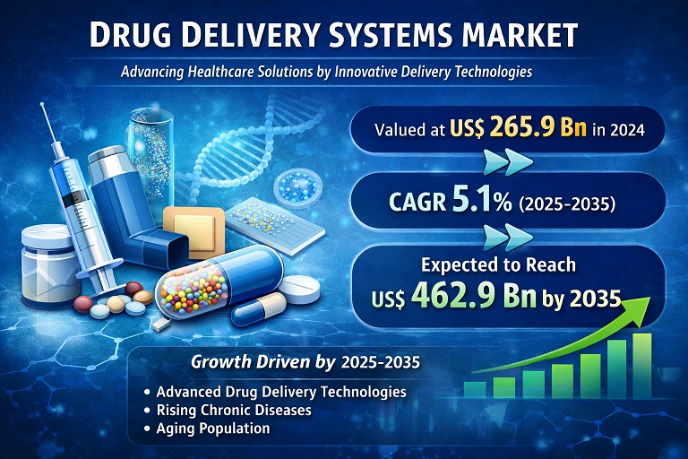 Drug Delivery Systems Market Expected to Reach USD 462.9 Billion by 2035, Supported by Expansion of Biologics and Targeted Therapies