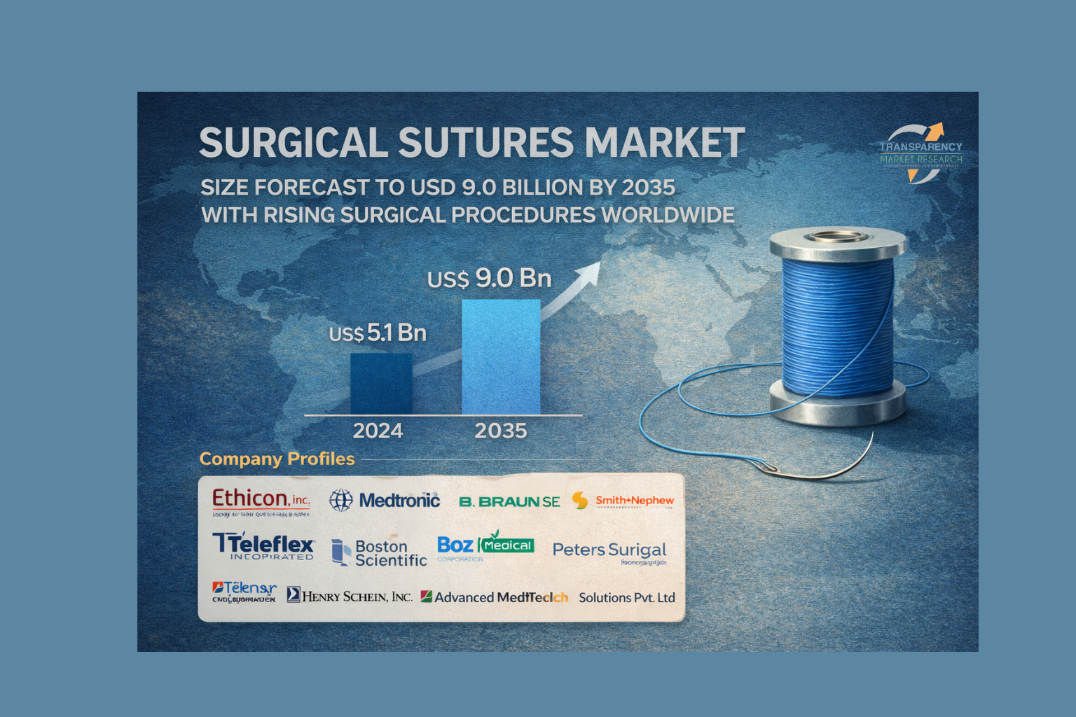 Surgical Sutures Market Size Forecast to USD 9.0 Billion by 2035 with Rising Surgical Procedures Worldwide – Analysis by Transparency Market Research